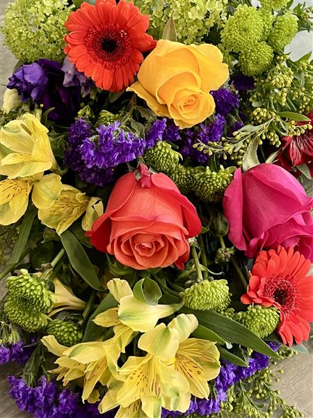 Why not let the Florist choose a romantic selection of beautiful flowers to take someone's breath away? Content may vary, but be assured each bouquet will include some roses and that each flower will carefully chosen to compliment your colour choice.