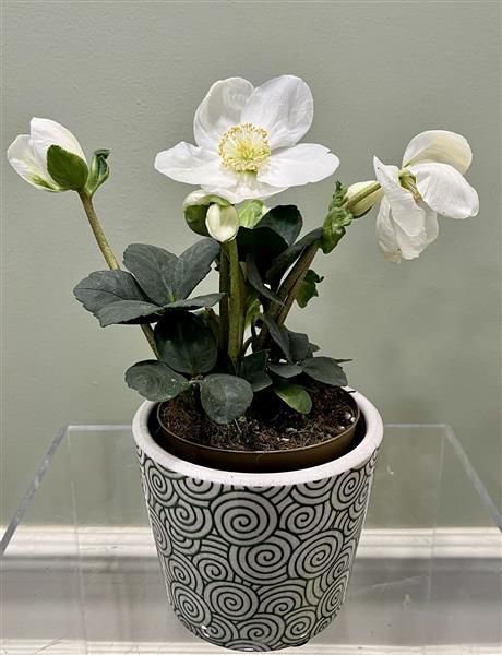 This lovely little white Hellebore comes in a glazed pot, with green detail (pattern may vary)