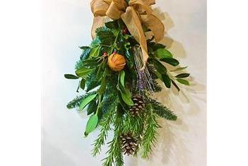 Blue pine, rosemary and lavender combined to create this rustic door swag decoration as an alternative to a traditional door wreath. Do please call the shops for any specifications.
