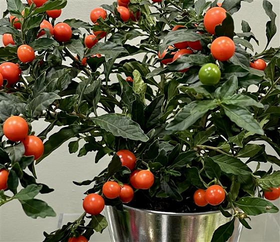 A seasonal favourite, the solanum (or Winter Cherry) adds a splash of long-lasting colour to any room. In a simple container, these plants are low maintenance but definitely not edible, despite their colloquial name.